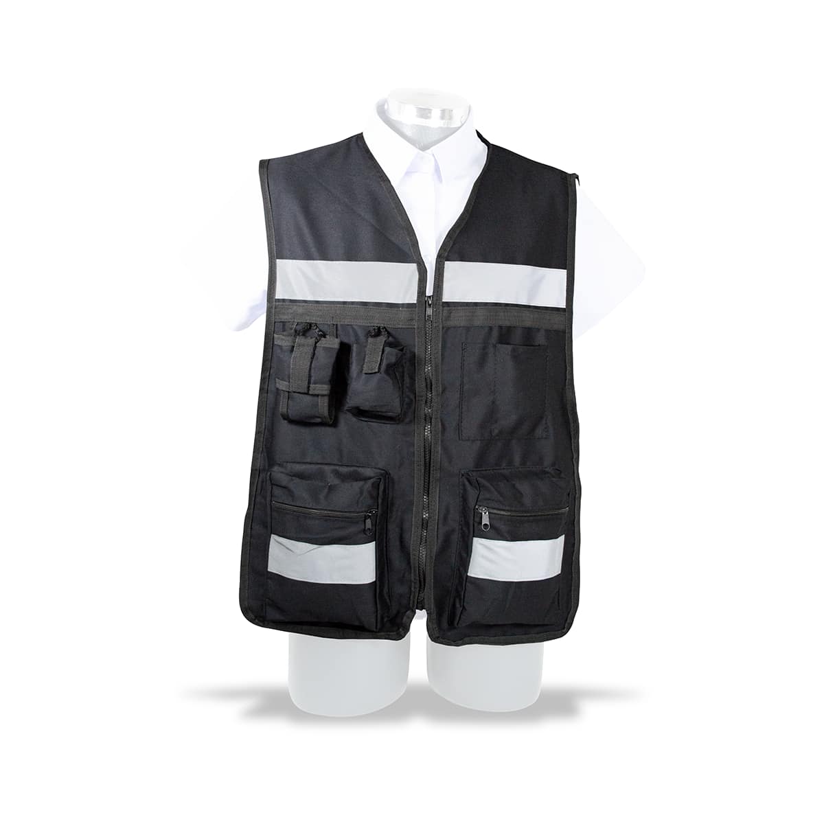 • Práctico diseño funcional: Incluye portagafete, dos bolsas frontales y una bolsa adicional para celular o radio.